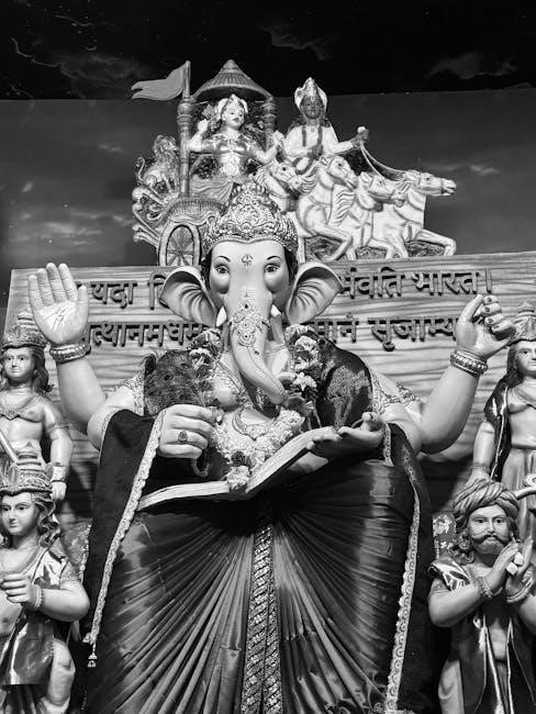 Conversely‚ the Kauravas‚ led by Duryodhana‚ represent ambition‚ envy‚ and adharma. The PDF format allows for a close examination of their characters’ motivations and the escalating conflict that leads to the Kurukshetra War.