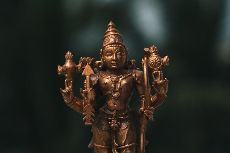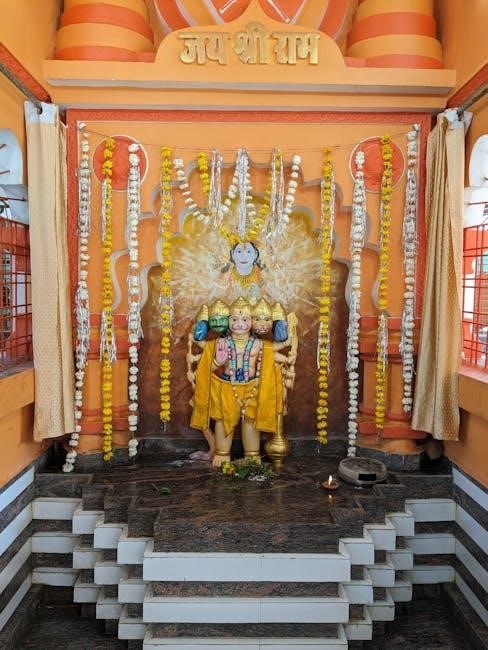 This widespread practice fosters a sense of communal devotion and personal connection with Lord Hanuman, reinforcing the hymn’s role as a cornerstone of Hindu spiritual life. The convenience of the PDF format allows for flexible recitation times and locations, further embedding the Chalisa into daily routines.