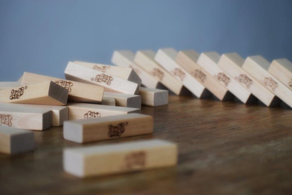 Therapy Jenga creatively blends a classic game with therapeutic inquiry, utilizing PDF question tabs adhered to the blocks for engaging sessions․